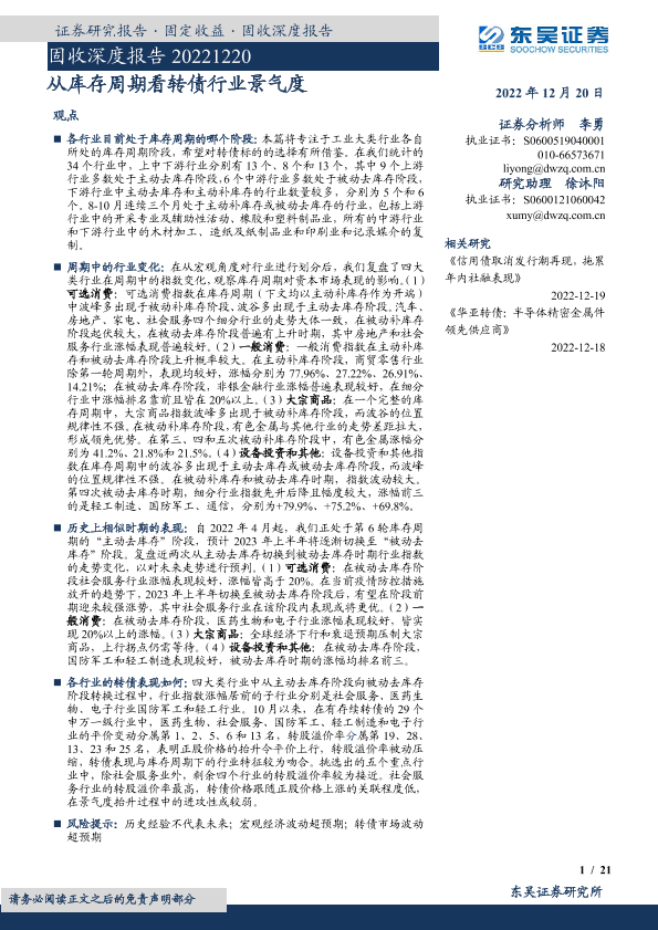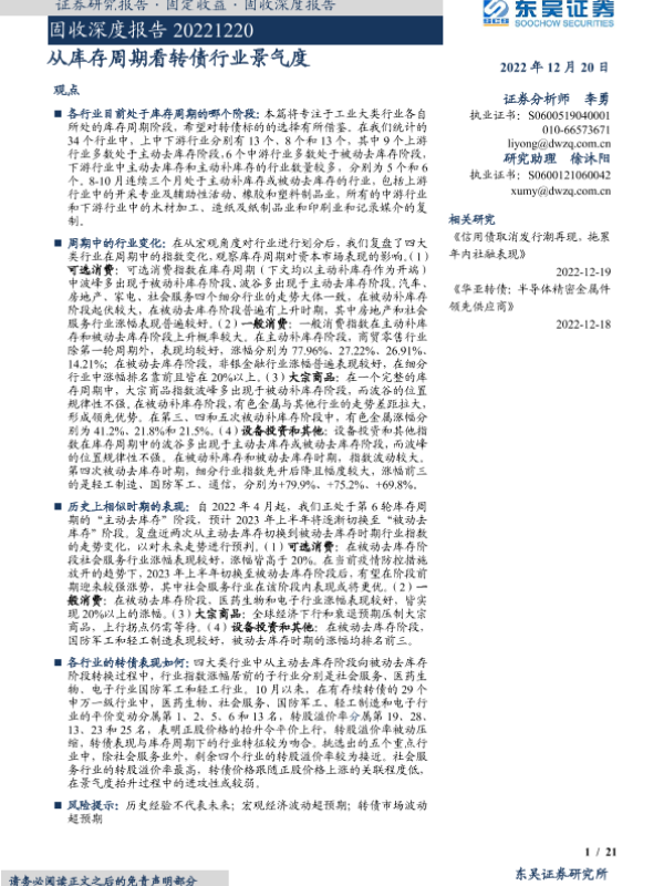 【东吴证券】【20221220】固收深度报告:从库存周期看转债行业景气度-21页