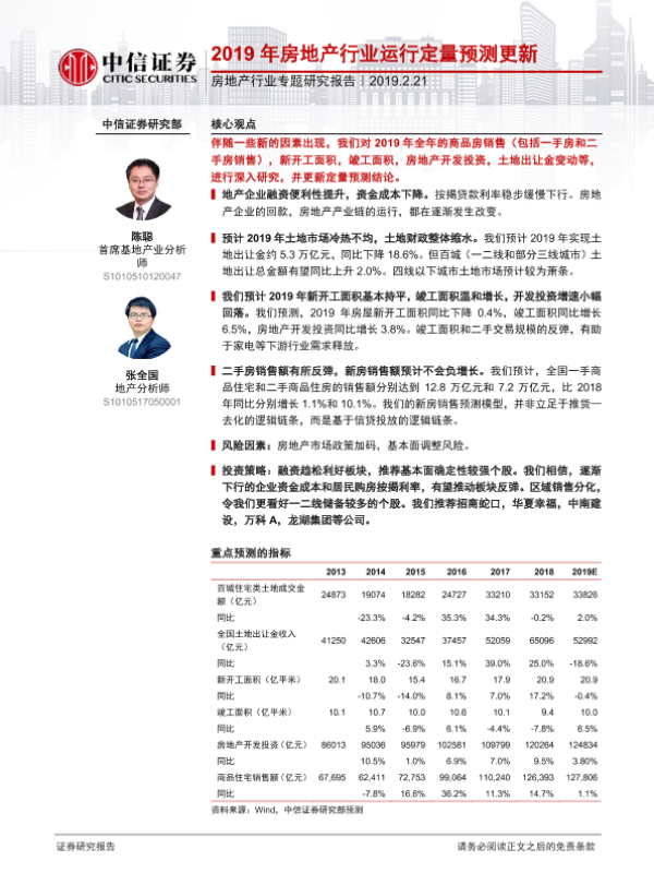 【中信证券】【20190221】2019年房地产行业运行定量预测更新-13页