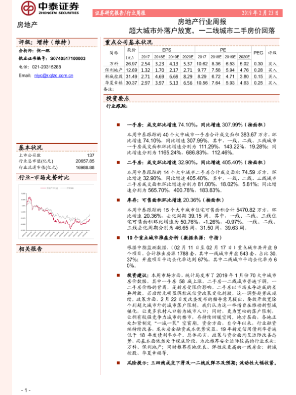 【中泰证券】【20190223】超大城市外落户放宽,一二线城市二手房价回落-16页
