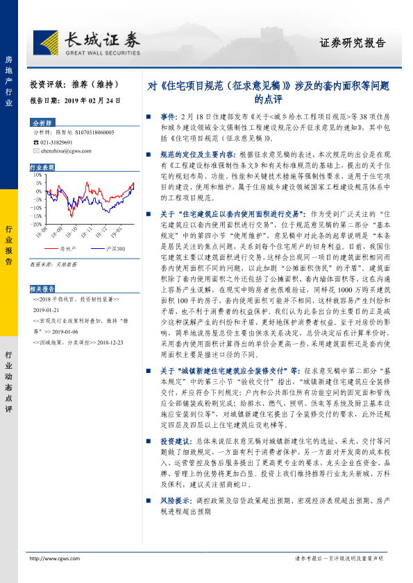 住宅项目规范 套内面积 房地产 政策解读 长城证券