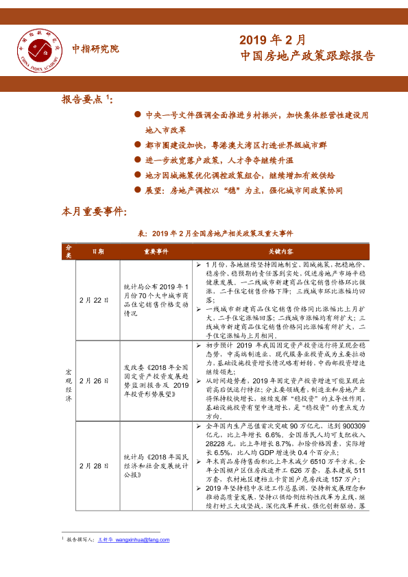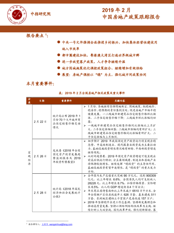 【中指研究院】【201902】2019年2月中国房地产政策跟踪报告-20页