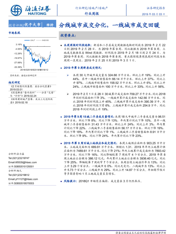 【海通证券】【20190303】房地产行业周报:分线城市成交分化,一线城市成交回暖-6页