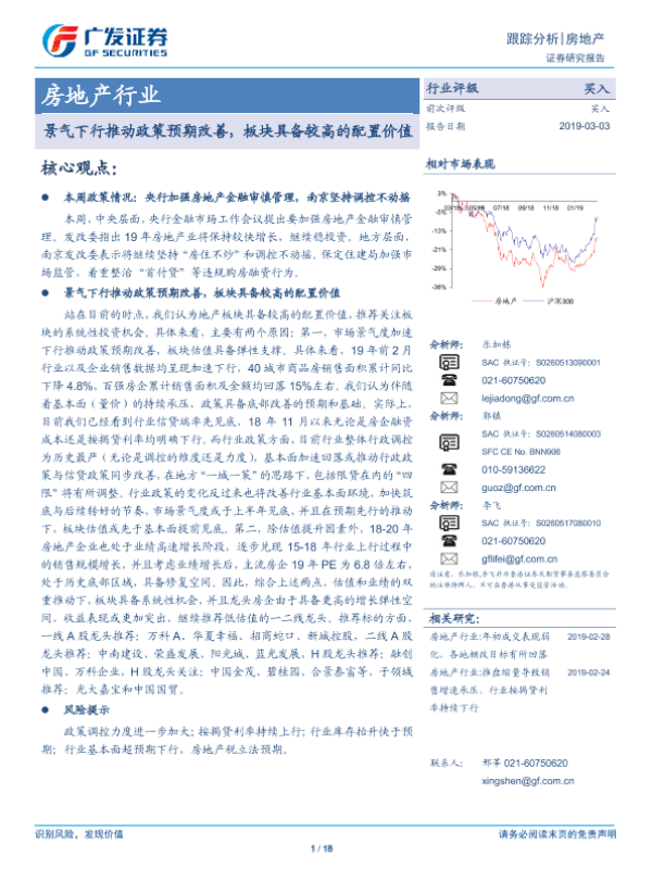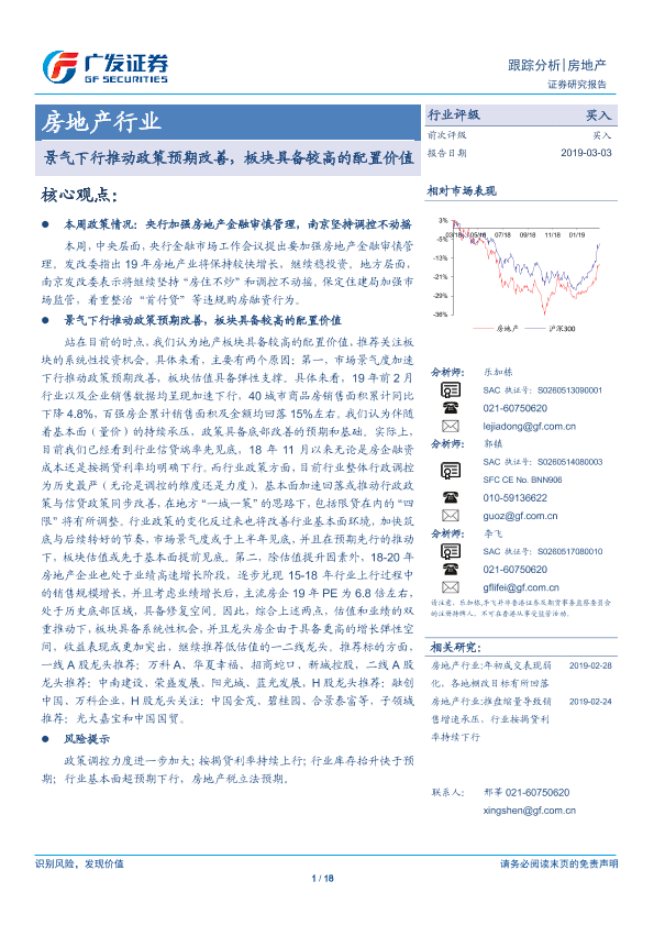 【广发证券】【20190303】房地产行业跟踪分析:景气下行推动政策预期改善,板块具备较高的配置价值-18页