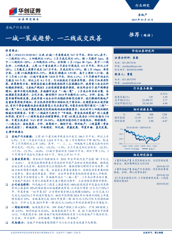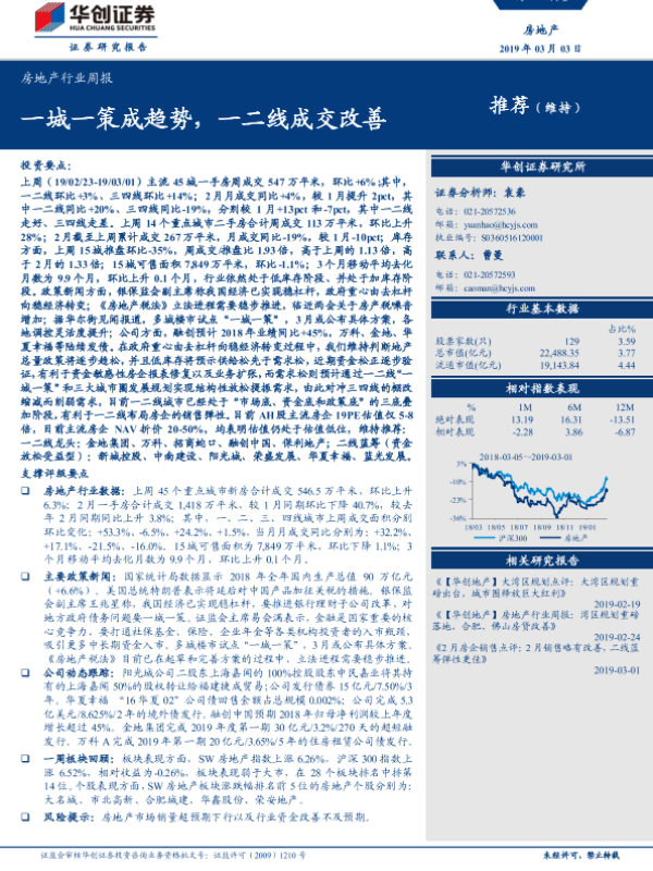 【华创证券】【20190303】房地产行业周报:一城一策成趋势,一二线成交改善-23页