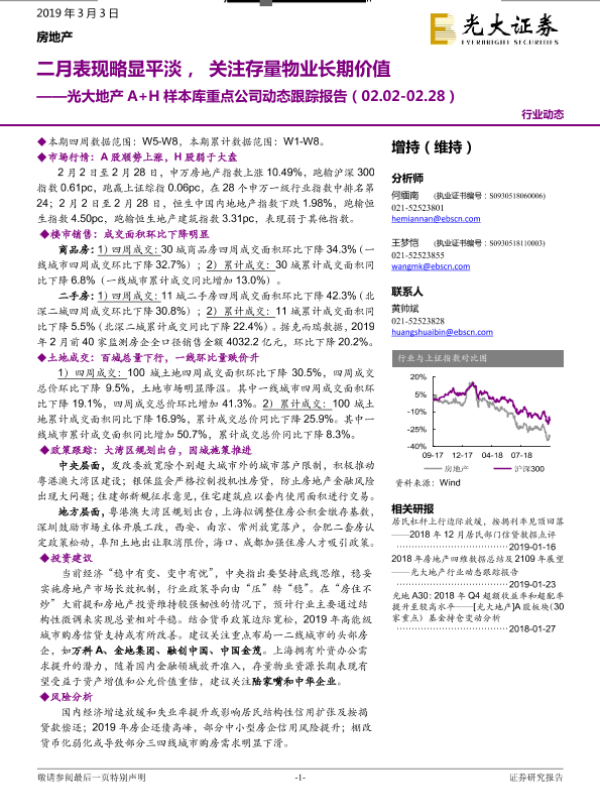 【光大证券】【20190303】二月表现略显平淡,关注存量物业长期价值-18页