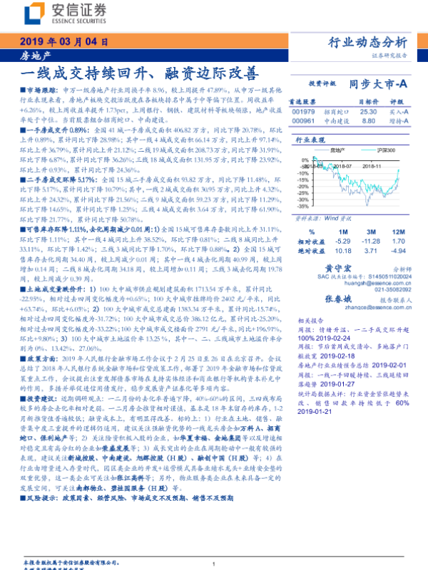 【安信证券】【20190304】房地产:一线成交持续回升、融资边际改善-10页