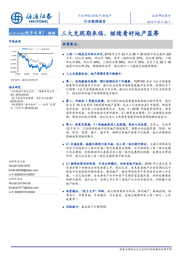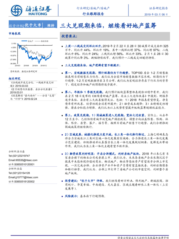 【海通证券】【20190306】房地产行业跟踪报告:三大兑现期来临,继续看好地产蓝筹-5页