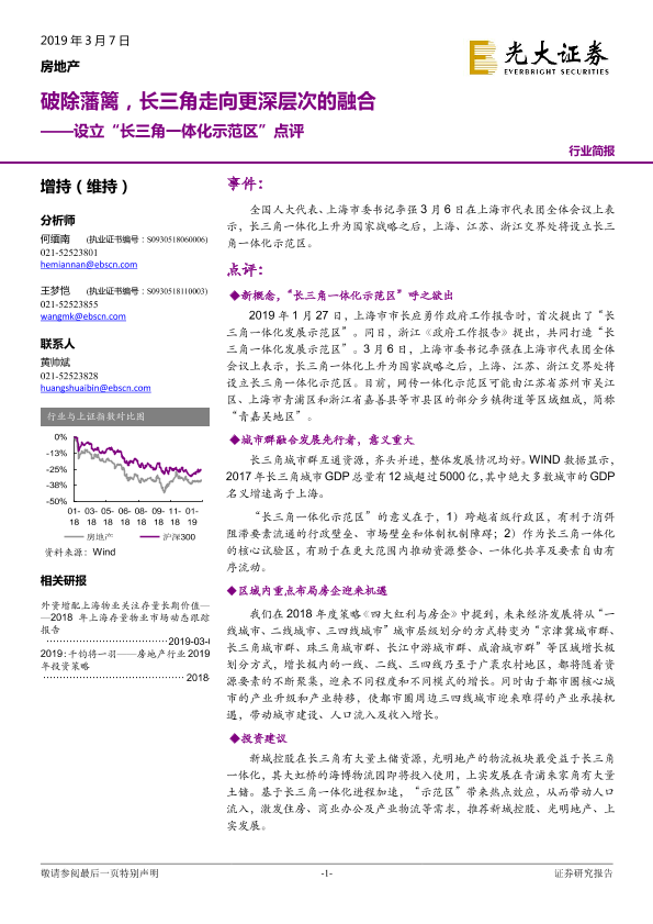 【光大证券】【20190307】设立“长三角一体化示范区”点评-破除藩篱,长三角走向更深层次的融合-6页
