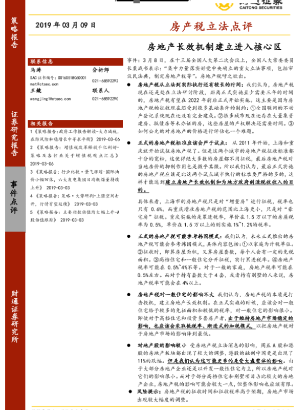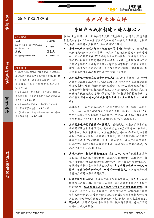 【财通证券】【20190309】房产税立法点评:房地产长效机制建立进入核心区-6页
