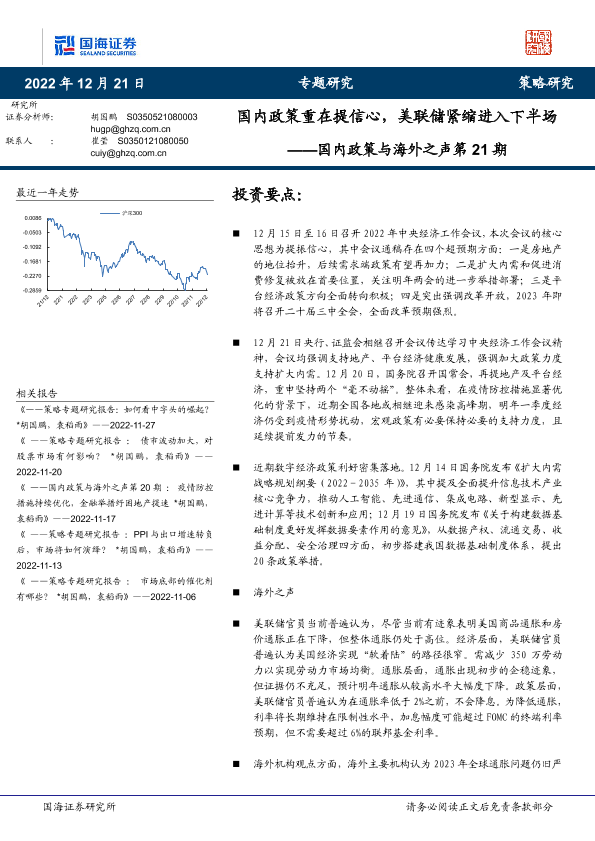 【国海证券】【20221221】国内政策与海外之声第21期:国内政策重在提信心,美联储紧缩进入下半场-16页