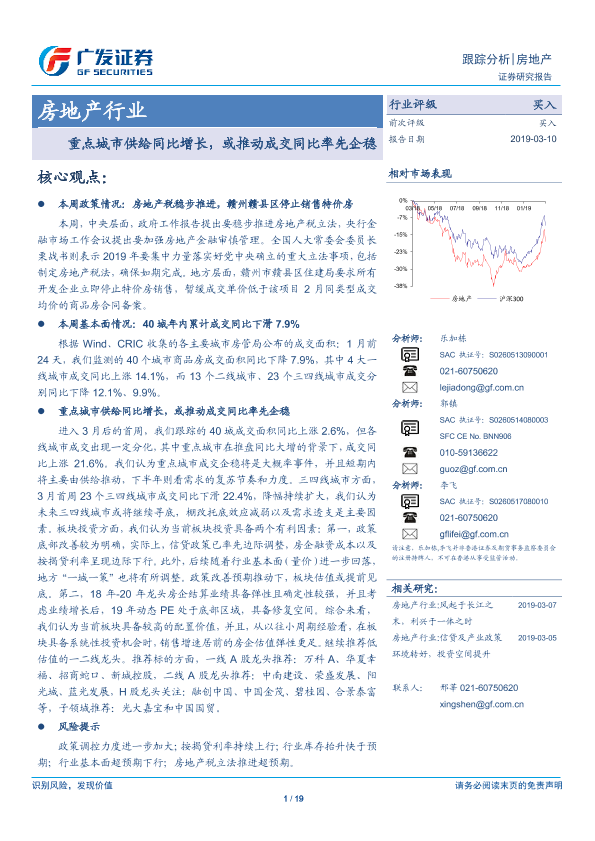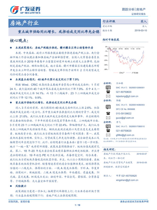 【广发证券】【20190310】房地产行业跟踪分析:重点城市供给同比增长,或推动成交同比率先企稳-19页