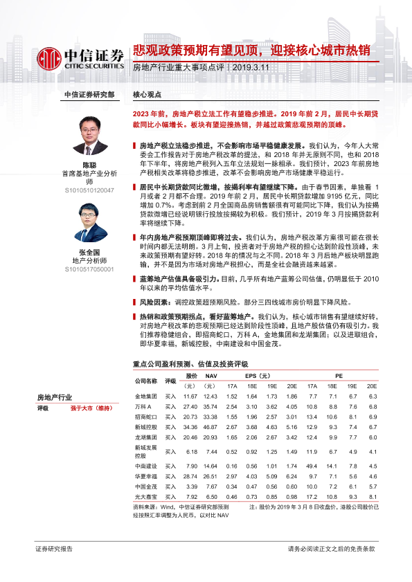 【中信证券】【20190311】悲观政策预期有望见顶,迎接核心城市热销-6页