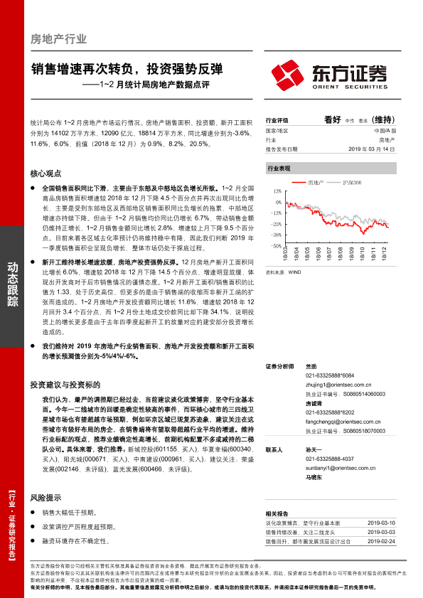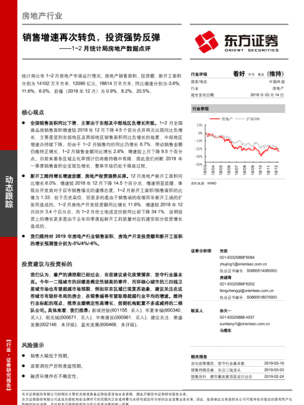 【东方证券】【20190314】1~2月统计局房地产数据点评:销售增速再次转负,投资强势反弹-10页