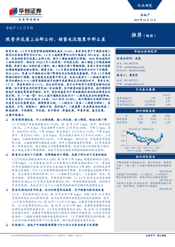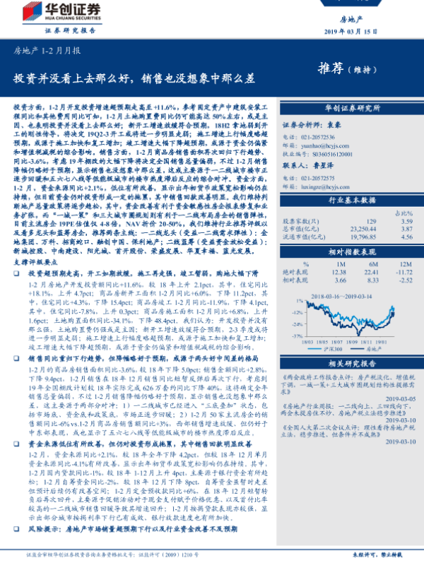 【华创证券】【20190315】房地产1-2月月报:投资并没看上去那么好,销售也没想象中那么差-20页