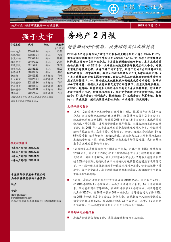 【中银证券】【20190315】销售降幅好于预期,投资增速高位或难持续-19页