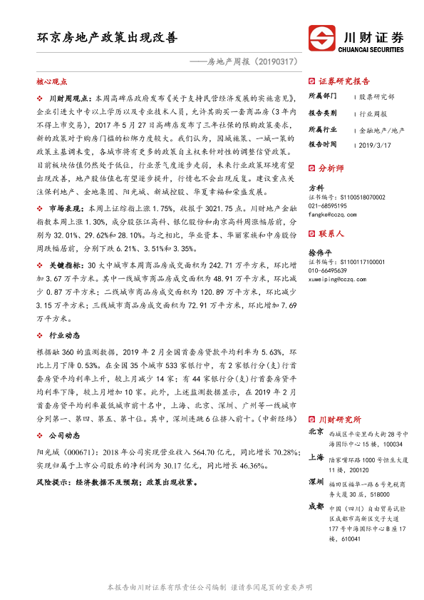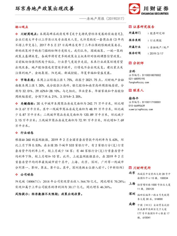 【川财证券】【20190317】房地产行业周报:环京房地产政策出现改善-10页