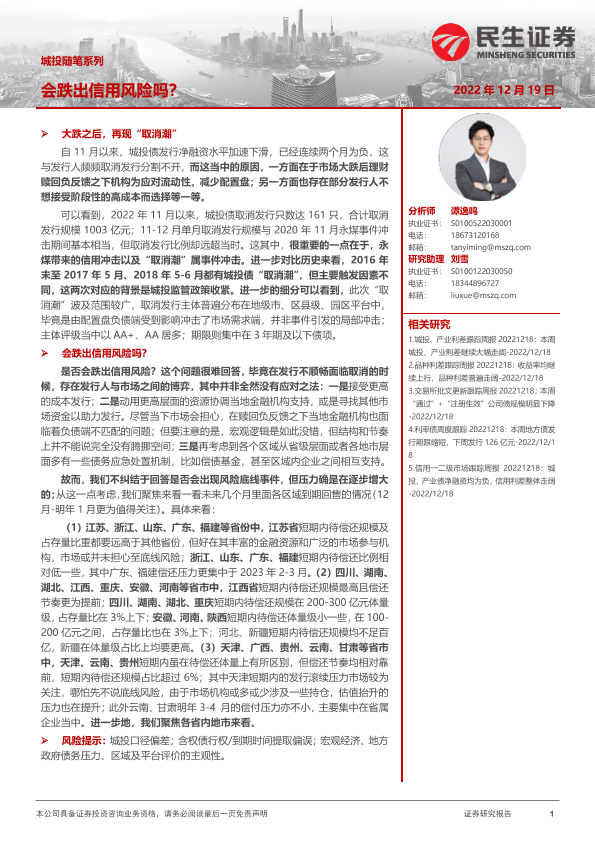 【民生证券】【20221219】城投随笔系列:会跌出信用风险吗?-15页