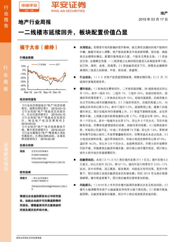 【平安证券】【20190317】地产行业周报:一二线楼市延续回升,板块配置价值凸显-5页