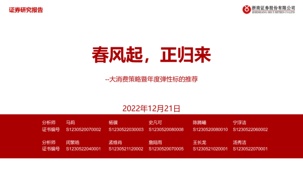 【浙商证券】【20221221】大消费行业策略暨年度弹性标的推荐:春风起,正归来-38页