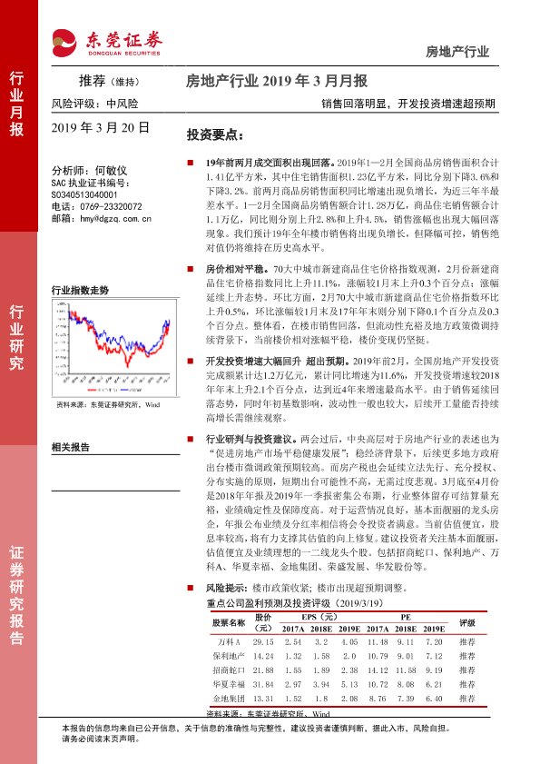 【东莞证券】【20190320】房地产行业2019年3月月报:销售回落明显,开发投资增速超预期-11页