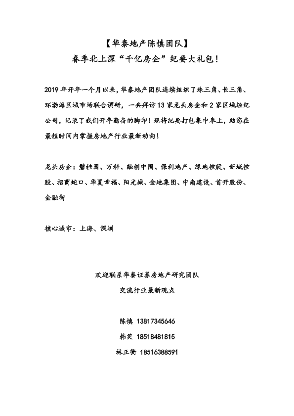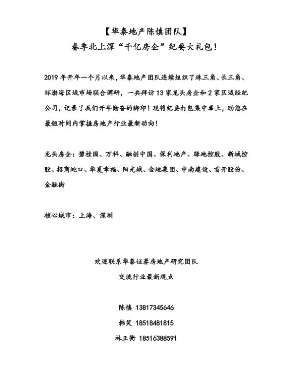 【华泰证券】【20190321】春季北上深“千亿房企”纪要大礼包-40页