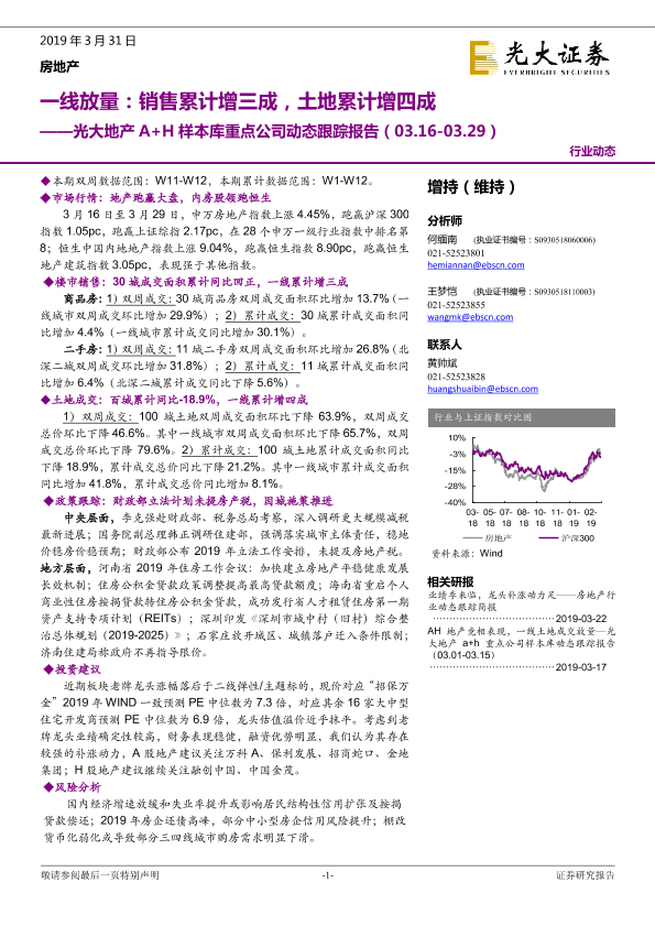 【光大证券】【20190331】一线放量:销售累计增三成,土地累计增四成-15页