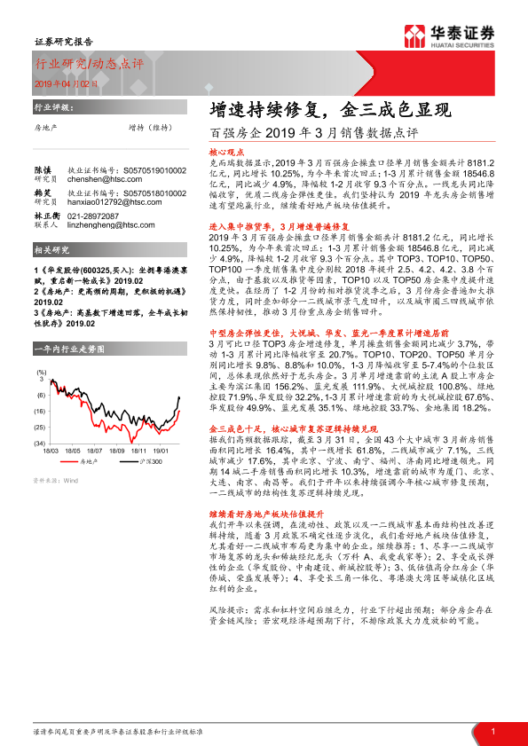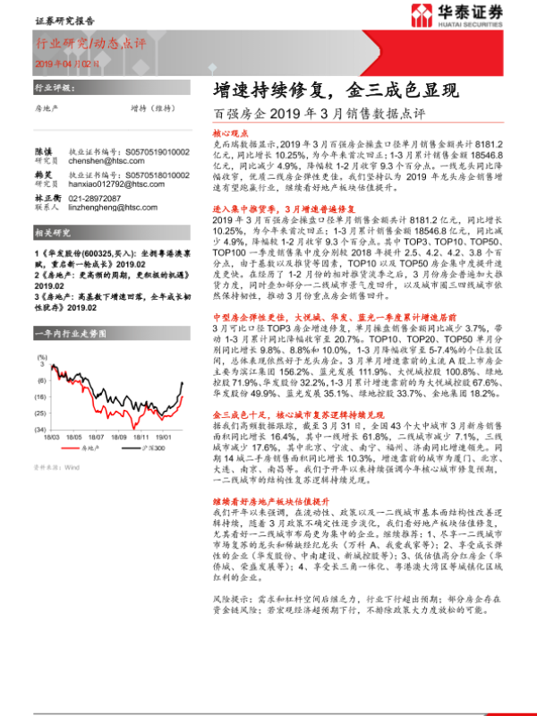 【华泰证券】【20190402】百强房企2019年3月销售数据点评:增速持续修复,金三成色显现-4页