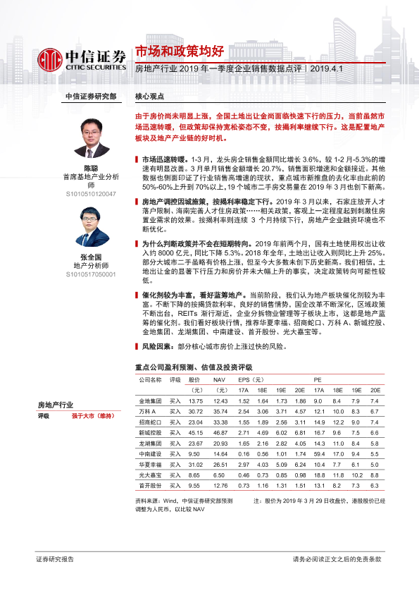 【中信证券】【20190401】房地产行业2019年一季度企业销售数据点评:市场和政策均好-7页