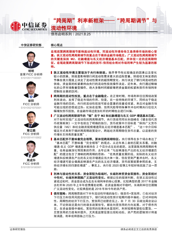 【中信证券】【20210825】债市启明系列:“跨周期”利率新框架-“跨周期调节”与流动性环境-28页