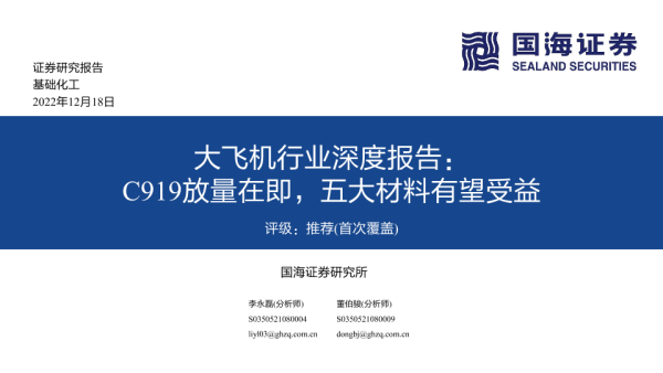【国海证券】【20221218】大飞机行业深度报告:C919放量在即,五大材料有望受益-36页