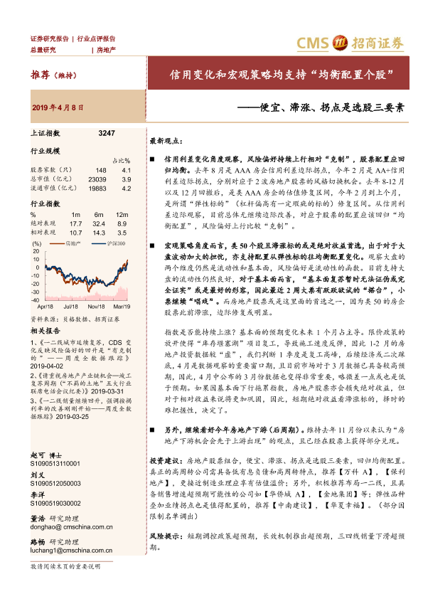 【海通证券】【20190408】房地产:信用变化和宏观策略均支持“均衡配置个股”-3页