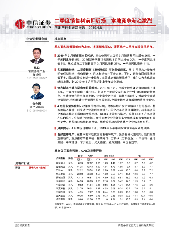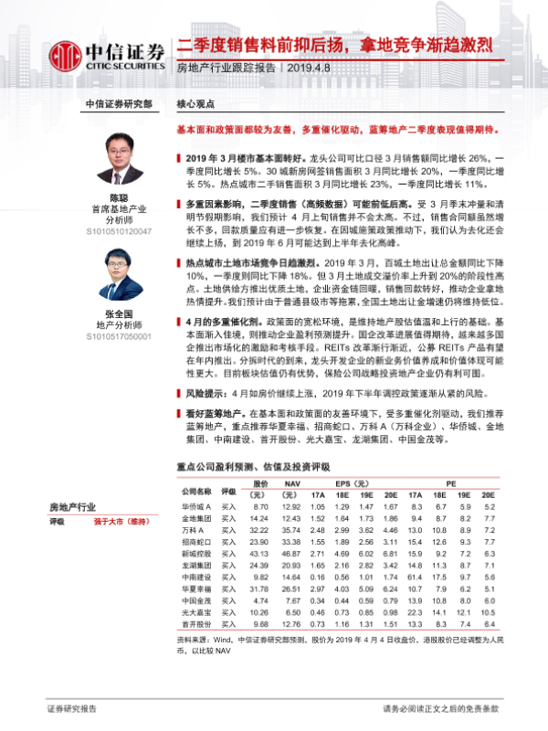 【中信证券】【20190408】二季度销售料前抑后扬,拿地竞争渐趋激烈-8页