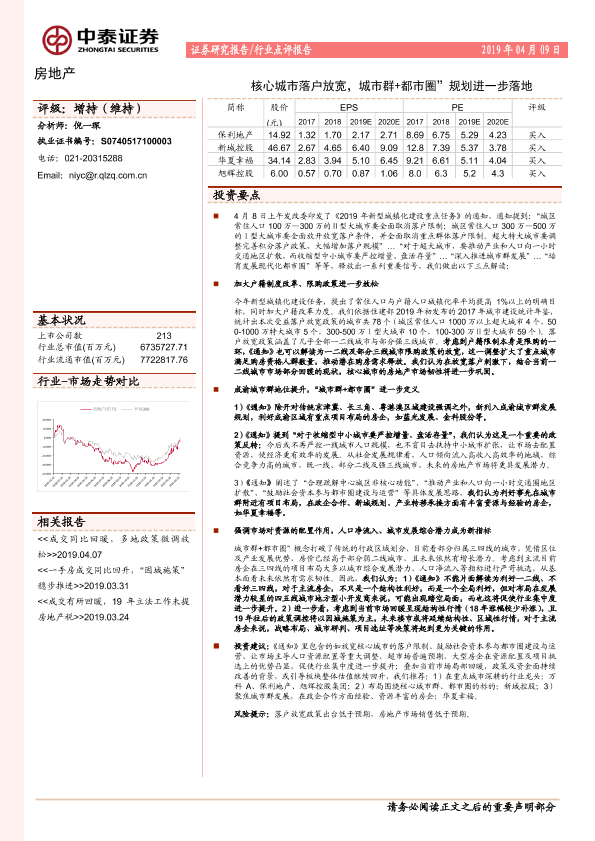 【中泰证券】【20190409】核心城市落户放宽,城市群+都市圈规划进一步落地-4页