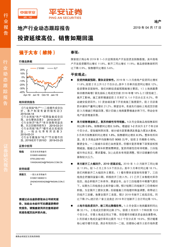【平安证券】【20190417】地产行业动态跟踪报告:投资延续高位,销售如期回温-14页
