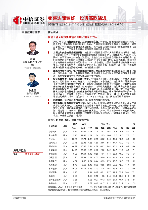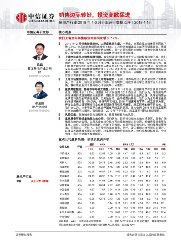 【中信证券】【20190418】房地产行业2019年1-3月行业运行数据点评-11页