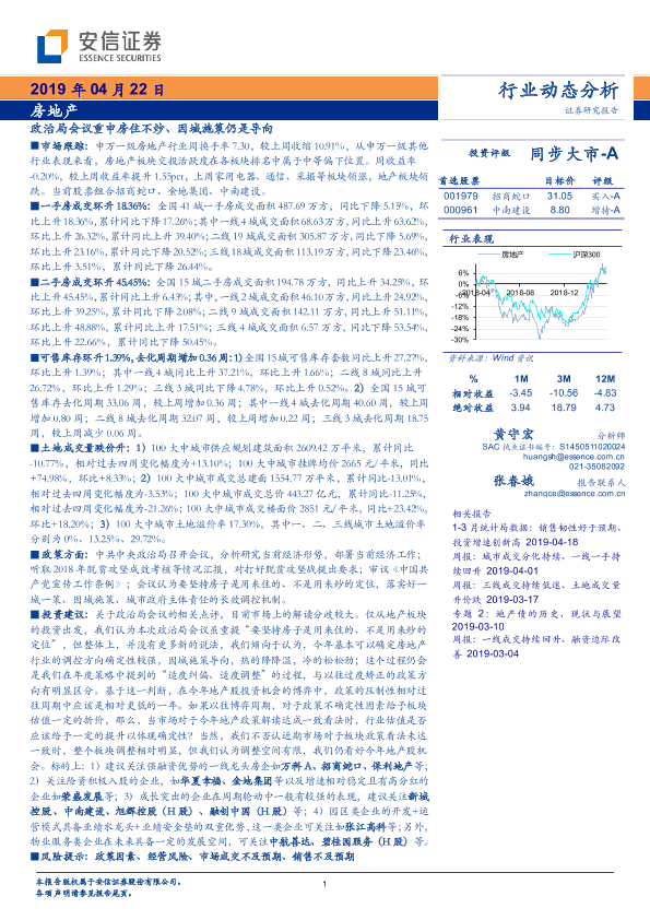 【安信证券】【20190422】房地产行业动态分析:政治局会议重申房住不炒、因城施策仍是导向-12页