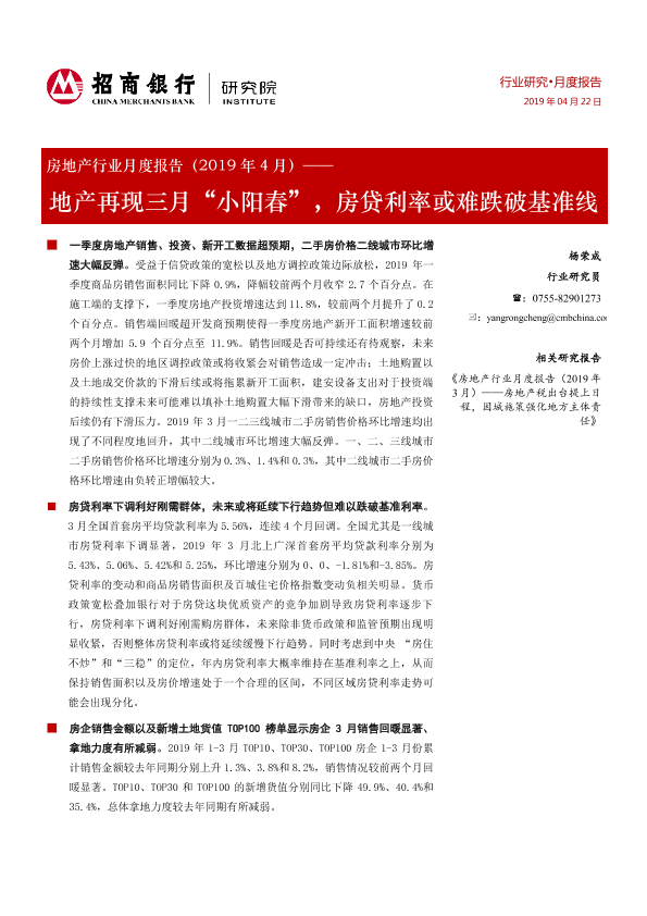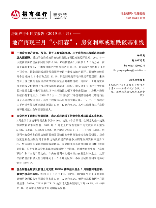 【招商银行】【20190422】地产再现三月“小阳春”,房贷利率或难跌破基准线-20页