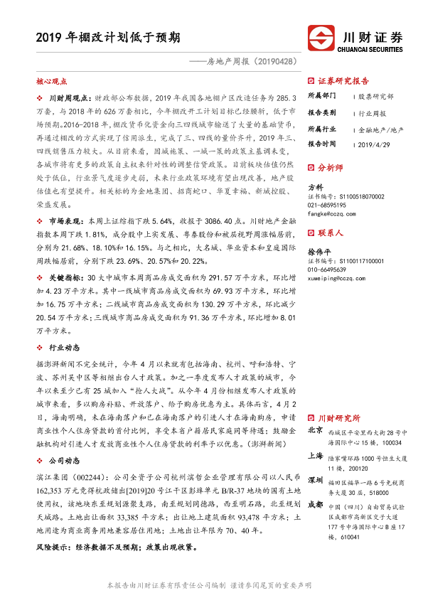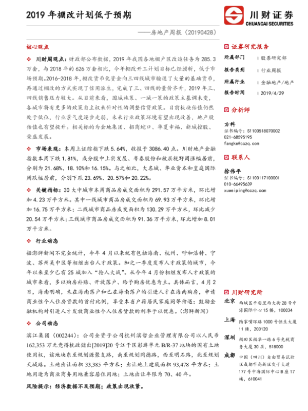 【川财证券】【20190429】2019年棚改计划低于预期-10页