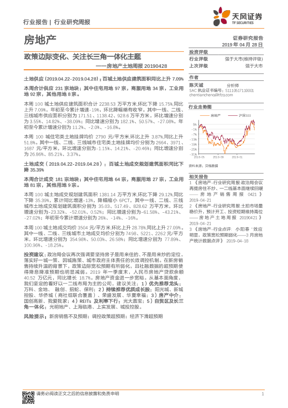 【天风证券】【20190428】房地产土地周报:政策边际变化、关注长三角一体化主题-8页