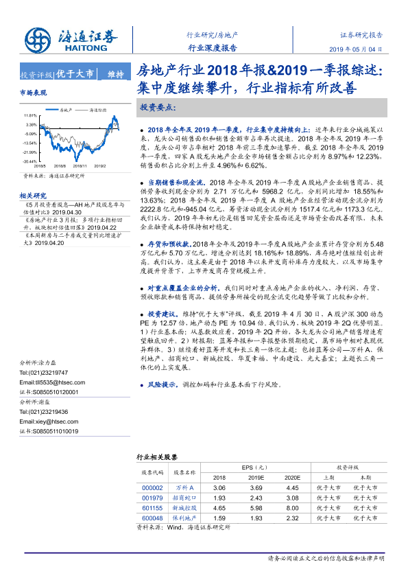 【海通证券】【20190504】房地产行业2018年报&2019一季报综述-27页