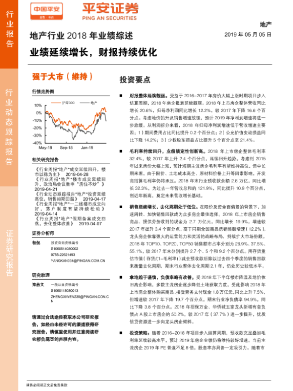 【平安证券】【20190505】地产行业2018年业绩综述:业绩延续增长,财报持续优化-19页