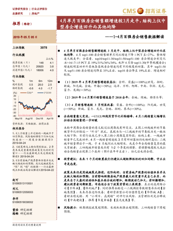 【海通证券】【20190505】1-4月百强房企销售数据解读-4页