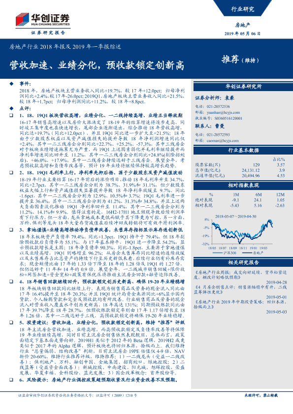 【华创证券】【20190506】房地产行业2018年报及2019年一季报综述-22页