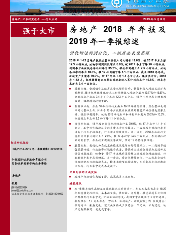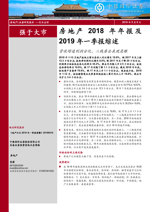 【中银证券】【20190508】房地产2018年年报及2019年一季报综述-10页