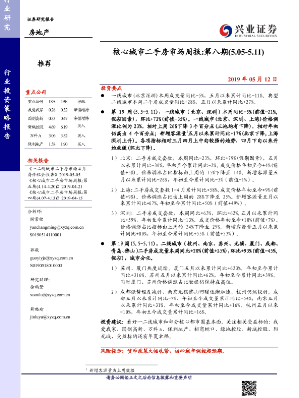 【兴业证券】【20190512】核心城市二手房市场周报 第八期-4页