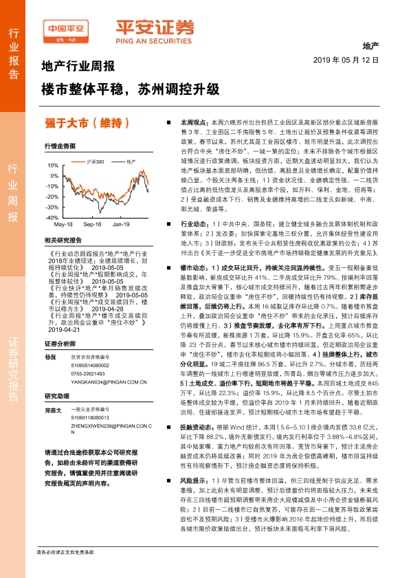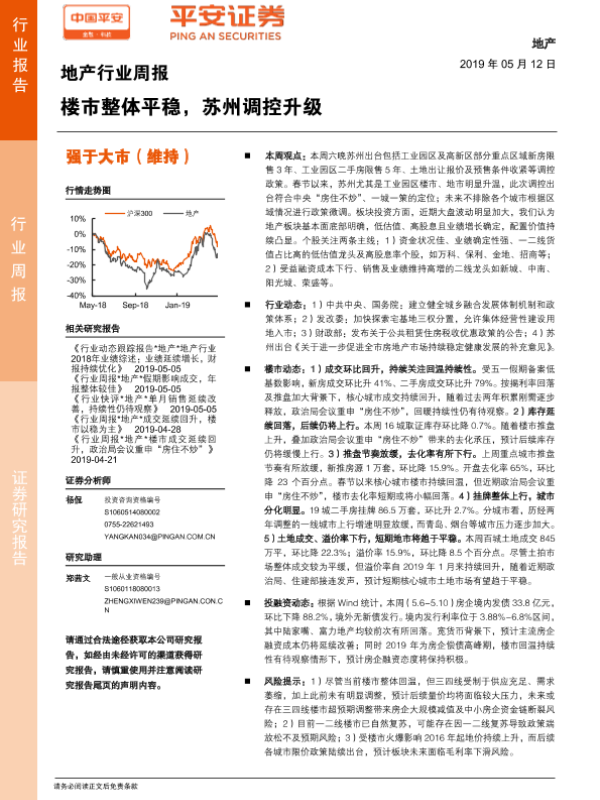 【平安证券】【20190512】地产行业周报:楼市整体平稳,苏州调控升级-5页