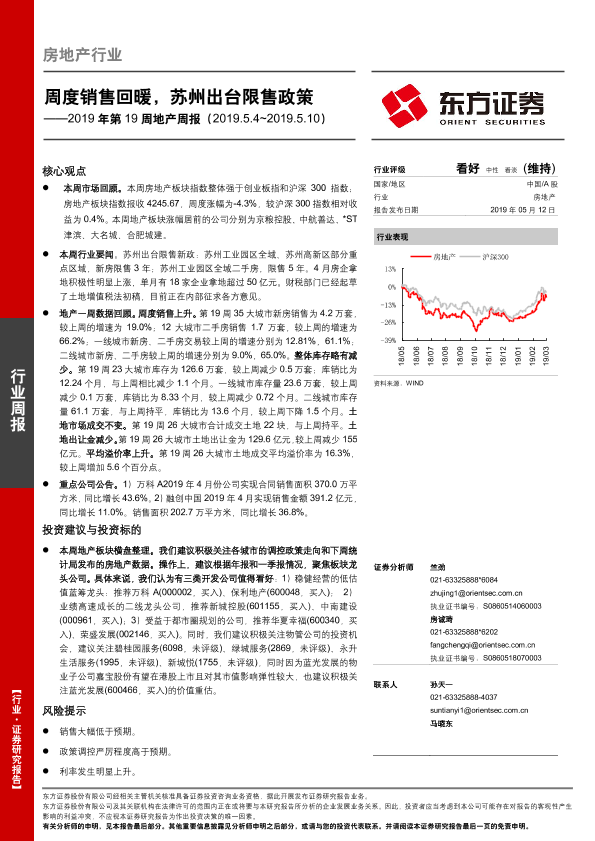 【东方证券】【20190512】2019年第19周地产周报:周度销售回暖,苏州出台限售政策-17页
