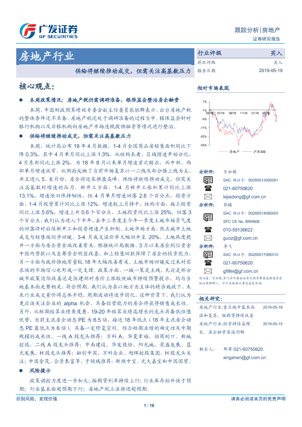 【广发证券】【20190519】房地产行业跟踪分析:供给将继续推动成交,但需关注高基数压力-19页