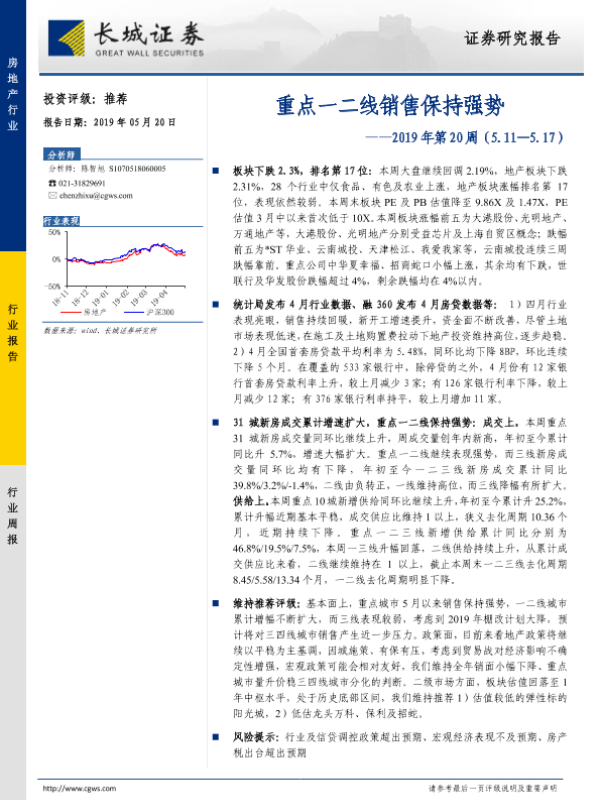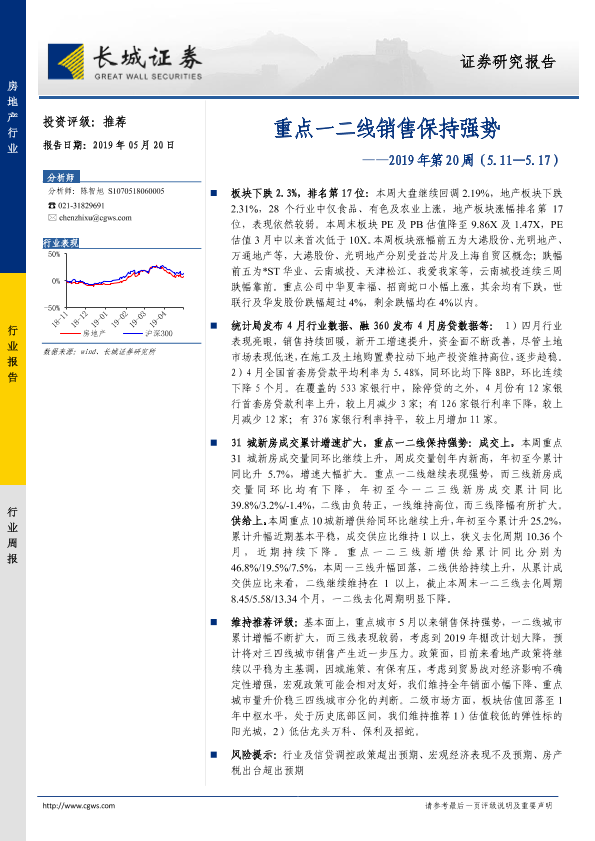 【长城证券】【20190520】房地产2019年第20周:重点一二线销售保持强势-16页