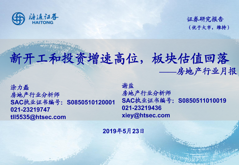 【海通证券】【20190523】新开工和投资增速高位,板块估值回落-18页